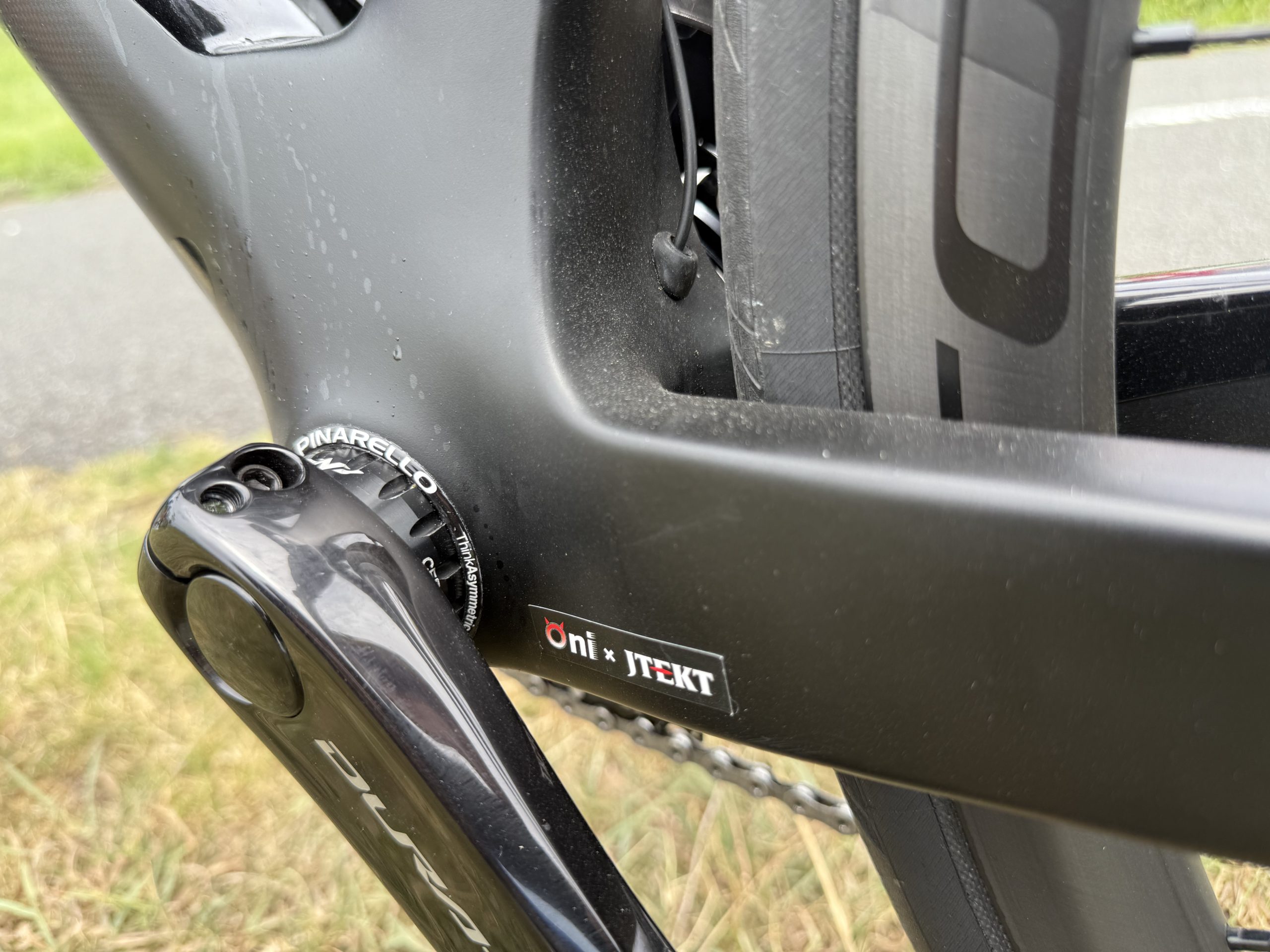 1. バイクのこだわりポイント 愛車は Pinarello Dogma F12 です。 Dogmaといえば「MOST Talon Ultra」が定番ですが、あえてVision Metron 5D EVOを選びました。バーテープも個性的なものをと考え、Cycologyを採用。サドルは福本店長おすすめのPrologo INEOS Special Edition、そしてBBには回転性能に定評のある「鬼ベアリング」を使用しています。細部まで自分らしさを取り入れた一台です。